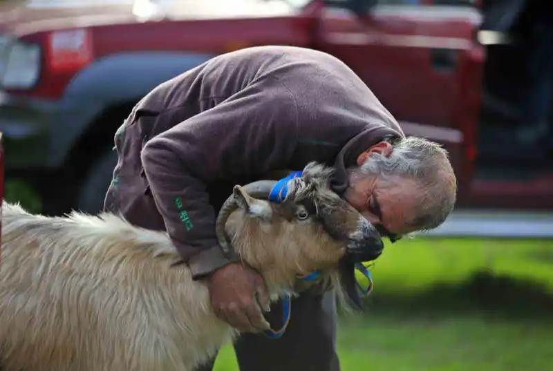 3 keçisini kurtlar yiyen yaşlı adam, mahsur kaldığı uçurumdan kurtarılan son keçisine sarılıp doyasıya öptü