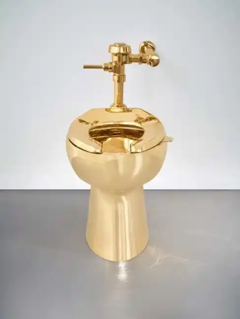 Tuvalet, Maurizio Cattelan’ın 2016 yılında yaptığı iki tuvaletten biriydi. Diğeri ise 2016 yılında New York’taki Guggenheim Müzesi’nde sergilenmiş, daha sonra eski İngiltere Başbakanı Winston Churchill’in doğduğu kır malikanesi Blenheim Sarayı’nda sergilendiği sırada çalınmıştı. Soygunda 2 kişi yakalanırken, altın tuvaet bulunamamıştı. Altın tuvaletin parçalanıp eritildiğine inanılıyor.