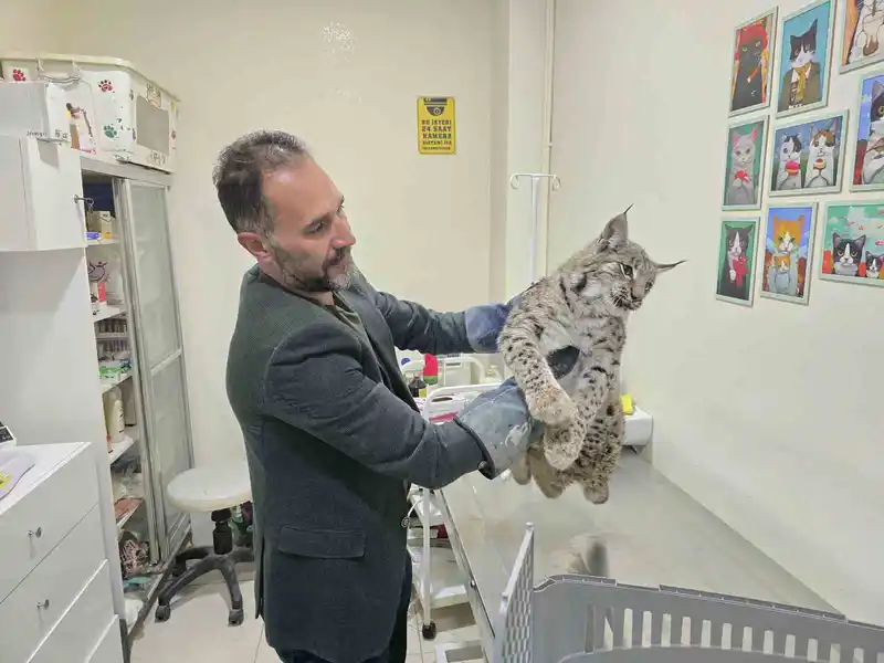 Aracın çarptığı vaşak tedaviye alındı