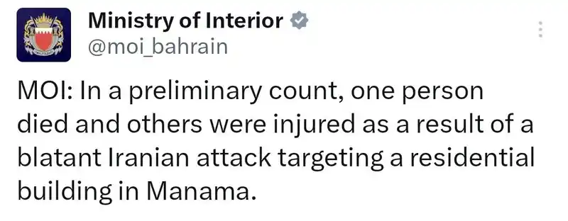 Bahreyn İçişleri Bakanlığı, ülkenin başkenti Manama'daki sivil bir binayı hedef alan İran saldırısında 1 kişinin hayatını kaybettiğini ve yaralananların olduğunu açıkladı. İran'ın ABD üslerine ev sahipliği yapan Körfez ülkelerine yönelik misilleme saldırıları sürüyor.
