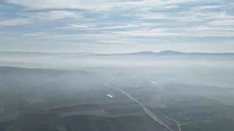 Çorum’da sabah saatlerinde hava sıcaklığının düşmesi sebebiyle sis etkili olmaya başladı. Kent merkezinde de etkili olan sis, Ankara-Samsun karayolunda görüş mesafesini düşürdü. Sisle kaplanan Çorum havadan görüntülendi.