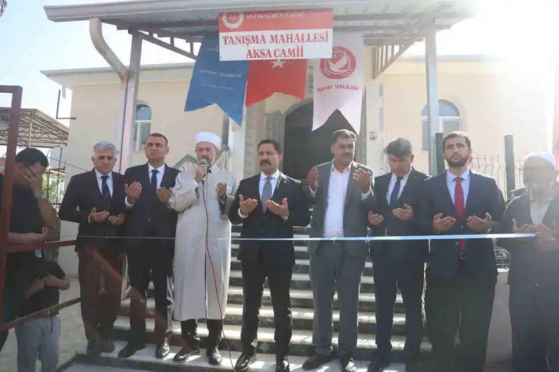 Hatay’da deprem sonrası inşa edilen 107’nci cami olan ‘Aksa Camii’ Vali Mustafa Masatlı’nın katılımıyla ibadete açıldı.