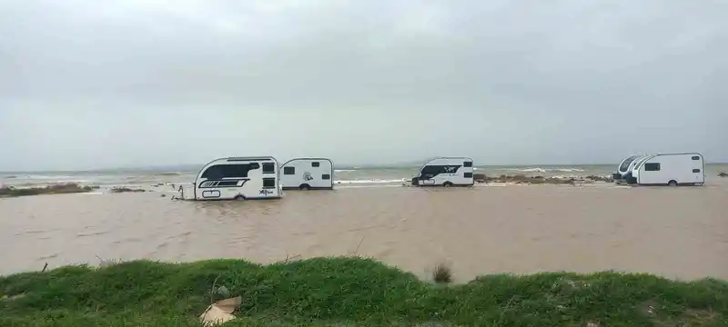 Bölgede park halinde bulunan karavanlar, yükselen sular nedeniyle tamamen su altında kaldı. Olay, fırtınanın yarattığı fiziksel tahribatın boyutlarını gözler önüne serdi.