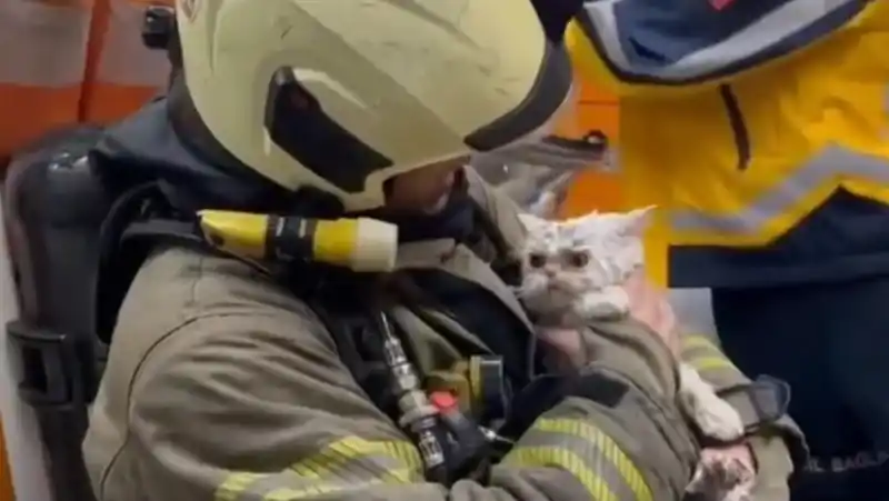 Ekiplerin müdahalesi sırasında, yangının sıçradığı ahşap binadan dumandan etkilenen bir kedi kurtarıldı. İtfaiye ekipleri tarafından ambulansa götürülen kediye oksijen takviyesi yapıldı. Sahibinin kucağında korkudan titreyen kedinin durumunun iyi olduğu belirtildi.