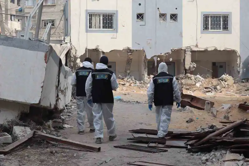 Gazze’de toplu şekilde defnedilen cenazeler kimlik tespiti için mezarlardan çıkarılmaya devam ediyor