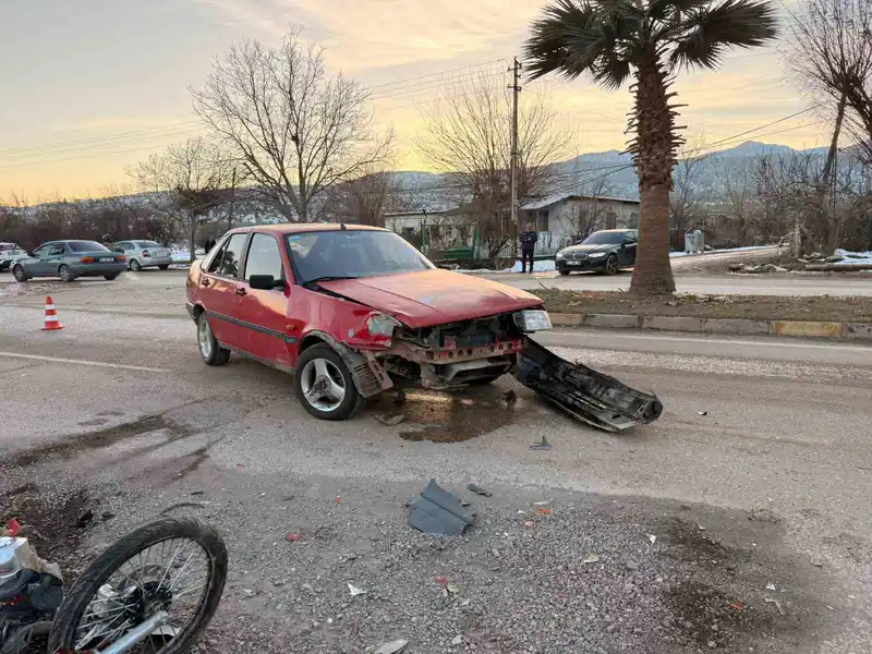 Hatay'ın Hassa ilçesinde, Derviş Paşa Bulvarı'nda trafik kazası yaşandı. V.D. idaresindeki Tofaş marka otomobil, dönüş yaparken E.D. kullandığı motosikletle çarpıştı.