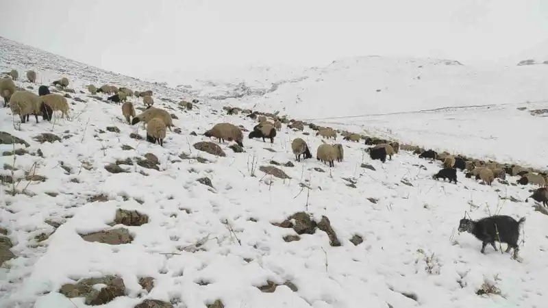 Kar yağdı, koyun sürüsü yaylada kaldı