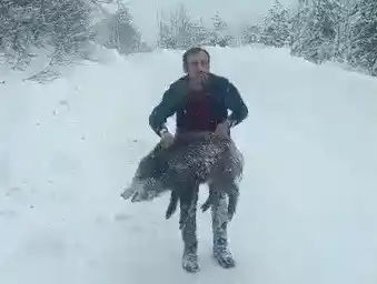Karlı yolda domuzu elleriyle yakalayan adam: 'Bir anı olsun diye yaptım, kimseye tavsiye etmem'