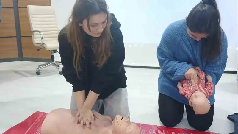 Eğitimde, öğrencilere günlük hayatta karşılaşılabilecek acil durumlarda yapılması gereken temel ilk yardım uygulamaları detaylı bir şekilde anlatıldı. Eğitim kapsamında temel yaşam desteği, yaralanmalarda ilk müdahale, kanama kontrolü ve bilinç kaybı durumlarında izlenecek adımlar hakkında kapsamlı bilgilendirme yapıldı.