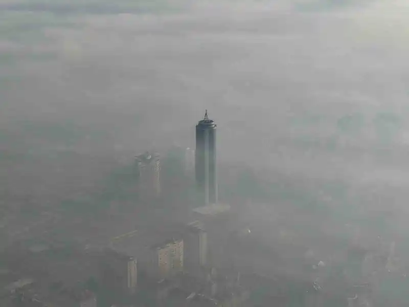 Konya kent merkezinde sabah saatlerinde etkili olan yoğun sis, havadan dron ile görüntülendi.