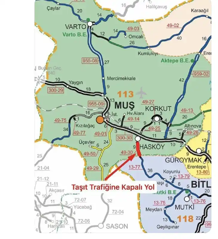 Muş’ta gece saatlerinde etkisini artıran kar yağışı, ulaşımı olumsuz etkiledi. Yoğun kar yağışı ve tipi nedeniyle Hasköy-Mutki Yolu’nun 0-11. kilometreleri arası ulaşıma geçici olarak kapatıldı. Karayolları ekipleri bölgede çalışma başlatırken, sürücülere zorunlu olmadıkça yola çıkmamaları ve kar lastiği kullanmaları konusunda uyarıda bulunuldu. Ekipler, yolun yeniden ulaşıma açılması için kar küreme ve tuzlama çalışmalarını sürdürüyor.