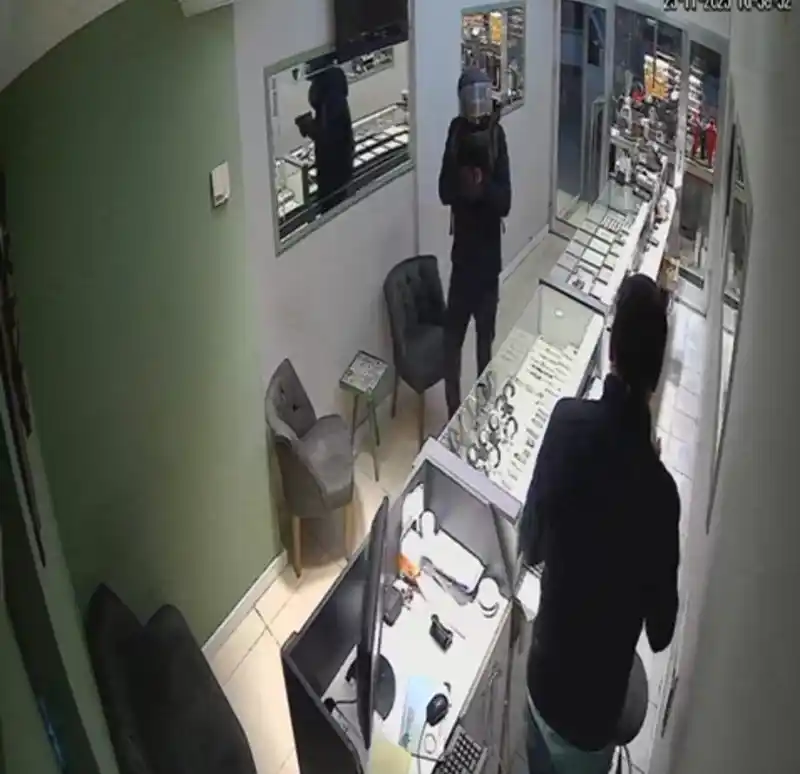 Ordu’nun Fatsa ilçesinde bir kuyumcuda meydana gelen ve yaklaşık 5 kilo altının gasp edildiği soygun anı güvenlik kamerasına saniye saniye yansıdı.