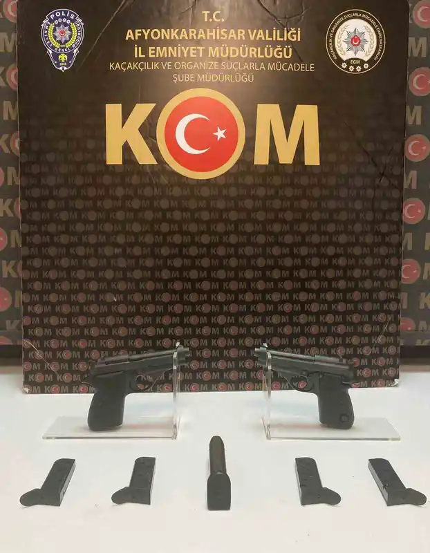 Afyonkarahisar'da huzur ve asayişi sağlamak için denetim yapan polis ekipleri, şüphe üzerine bir aracı durdurarak arama başlattı. Yapılan inceleme sonucunda araç içerisinde yasadışı silahların bulunduğu tespit edildi.