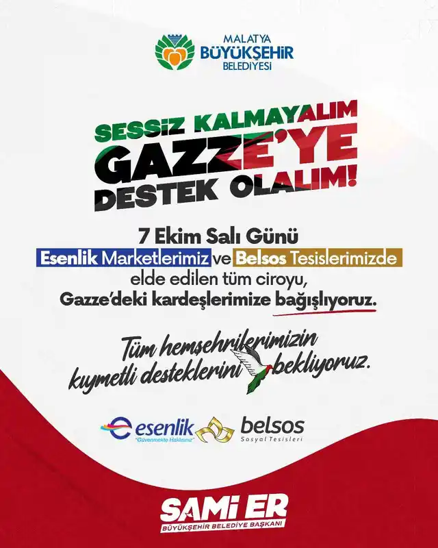 Malatya Büyükşehir Belediye Başkanı Sami Er’in, bir maaşını bağışlayarak 7 Ekim 2025 tarihinde başlattığı "Gazze’ye Yardım Kampanyası" büyük bir gönül seferberliğiyle 7 Kasım 2025 tarihinde tamamlandı.