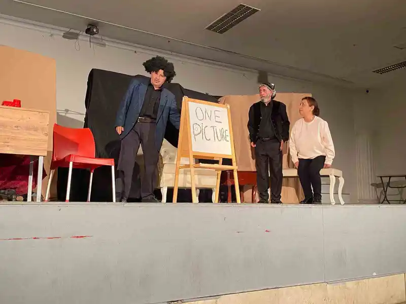 Sarıgöl Belediyesi Düğün Salonu’nda sahnelenen, Şehmus Yığın’ın yönettiği "Daha Neler Bahaneler" adlı kabare/komedi oyunu, izleyenlere keyifli anlar yaşattı. "Tiyatro Cepte" oyuncularının performansı salonu kahkahaya boğarken, oyun sonunda sanatçılar uzun süre alkışlandı.