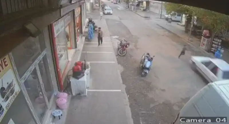 Şanlıurfa’nın Siverek ilçesinde yolun karşısına koşarak geçmeye çalışan çocuğa otomobil çarptı. Çarpmanın etkisiyle sürüklenen çocuk, saniyeler içinde ayağa kalkarak kaçtı. Kaza anı, güvenlik kamerasına saniye saniye yansıdı.