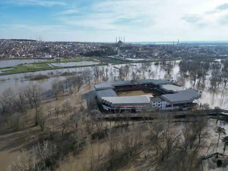Tarihi Kırkpınar Yağlı Güreşleri’nin yapıldığı Edirne Sarayiçi güreş alanı, son günlerde etkili olan yağışların ardından tamamen sular altında kaldı. Debisi yükselen Tunca Nehri, yatağından çıkarak nehir kenarında bulunan Sarayiçi Er Meydanı’nı kapladı.