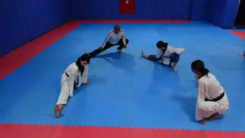 Tekvandocu babanın vakit geçirsinler diye salona götürdüğü 3 kızı milli tekvandocu oldu