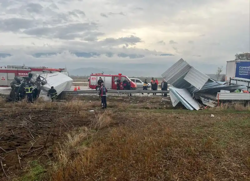 Edinilen bilgiye göre kaza, saat 08.10 sıralarında meydana geldi. O.T. (21) yönetimindeki 34 DFT 828 plakalı minibüs, aynı istikamette seyreden E.G. (28) kullandığı 60 AFC 712 plakalı yapı malzemesi yüklü kamyonete arkadan çarptı. Çarpışmanın etkisiyle minibüs sürücüsü O.T. araçta sıkışırken kamyonette bulunan malzemeler yola devrildi. İhbar üzerine olay yerine sağlık, kurtarma ve jandarma ve polis ekipleri sevk edildi. Yaralı sürücü, olay yerindeki ilk müdahalenin ardından Niksar Devlet Hastanesi’ne kaldırıldı.