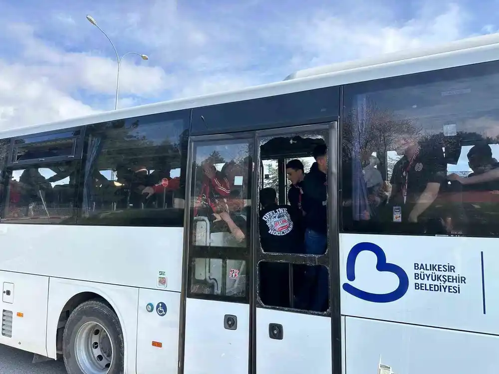Uşak’ta Nev Sağlık Grubu Balıkesirspor’un taraftar otobüsüne taşlı saldırı