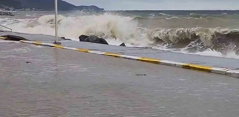 Dev dalgaların etkisiyle sahil yolu tamamen sular altında kaldı ve ulaşıma kapatıldı. Dalgaların şiddeti o kadar yüksekti ki, kıyıdaki bazı konutlara ulaşarak içeride su baskınlarına yol açtı.
