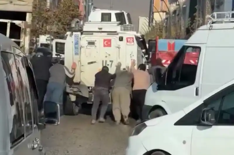 Edinilen bilgilere göre, olay, ilçenin Cengiz Topel Caddesi üzerinde gerçekleşti. Seyir halindeki zırhlı araç ana caddeye ulaştığı sırada arızalanarak yolda bulunan bir çukurda mahsur kaldı. Bir türlü hareket edemeyen zırhlı aracın yardımına çevredekiler koştu. Zırhlı aracın arkasına geçen vatandaşlar, aracı birlikte iterek bulunduğu yerden kurtardılar. Polis ekipleri, bu yardımsever davranışlarından dolayı vatandaşlara teşekkür etti.